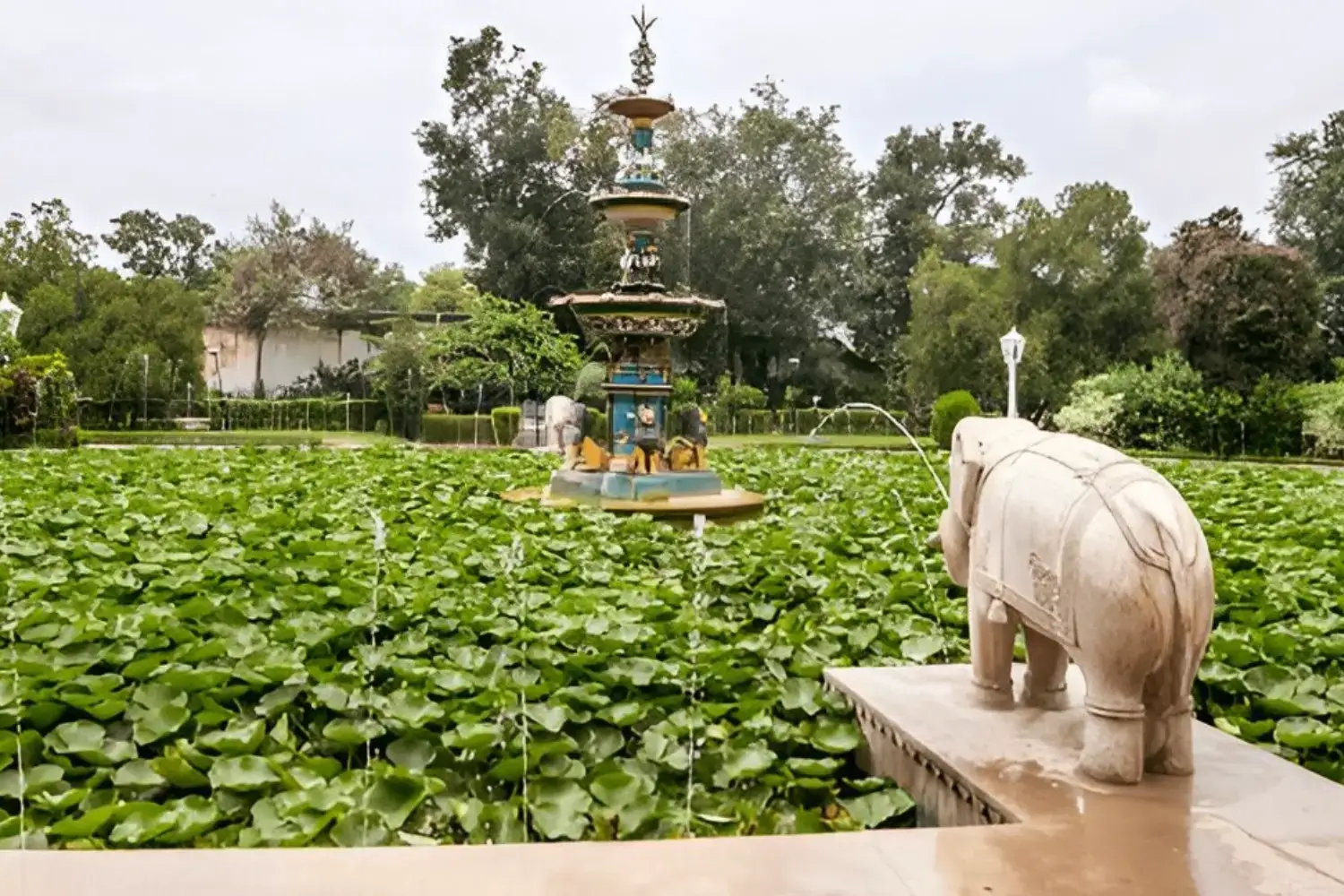 Central Pavilions: The garden boasts elegant marble pavilions, each with its own charm. The most notable is the Sawan Bhado Pavilion, designed with a unique system that mimics the sound and feel of monsoon rain through its strategically placed spouts, offering a cool respite during hot weather. Another pavilion houses the five charming marble elephants, from whose trunks water spouts into the lotus pool, adding a playful and artistic touch.